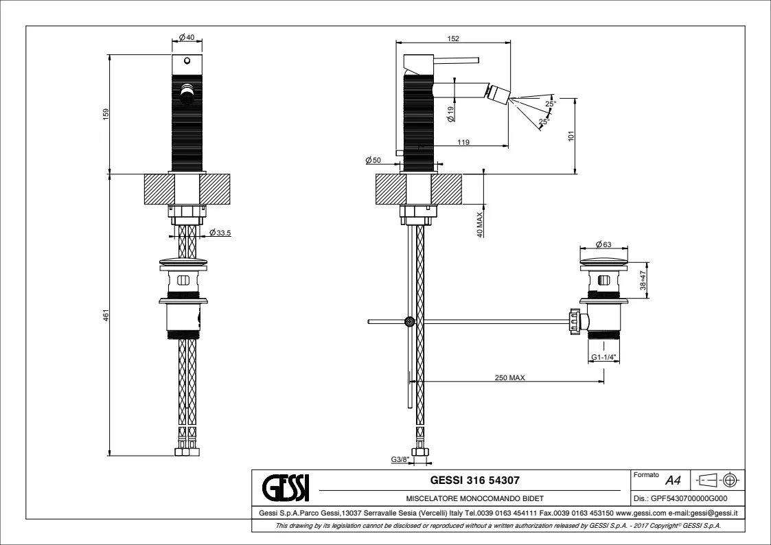 Смеситель для биде Gessi 54307.708 Copper Brushed PVD