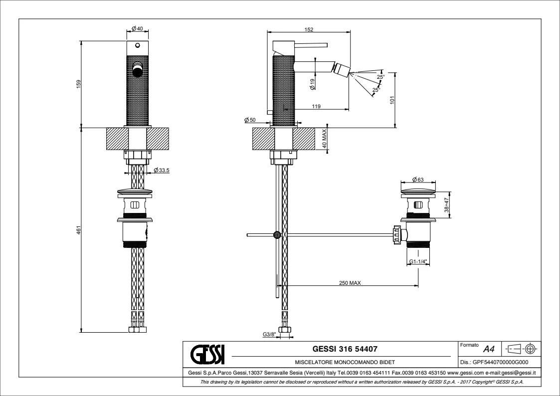 Смеситель для биде Gessi 54407.708 Copper Brushed PVD