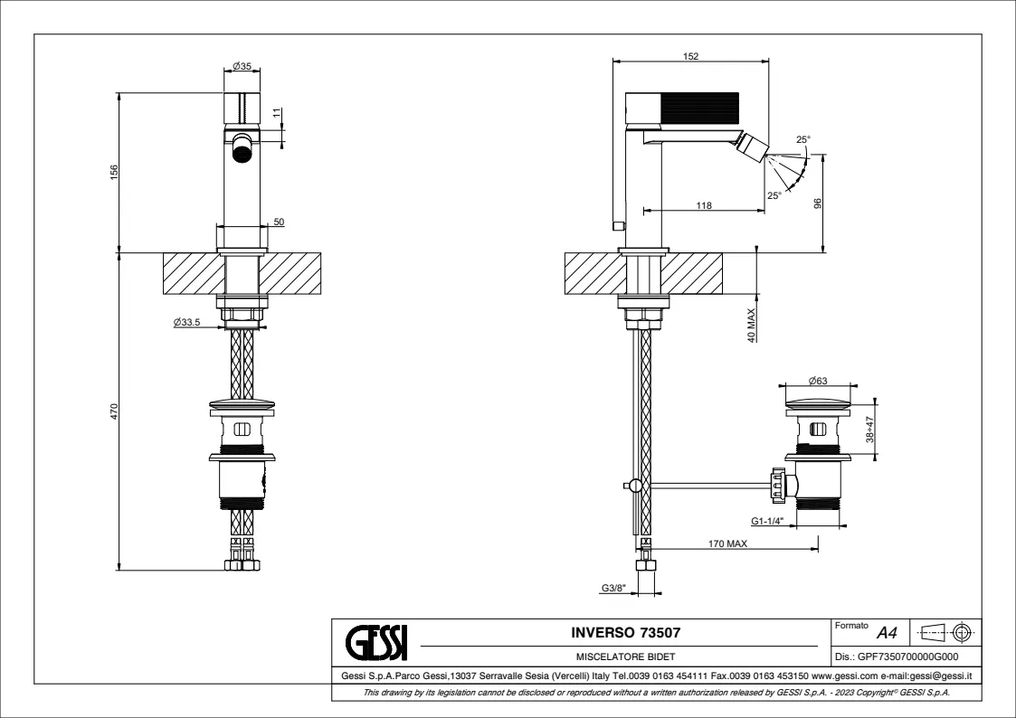 Смеситель для биде Gessi 73507.708 Copper Brushed PVD