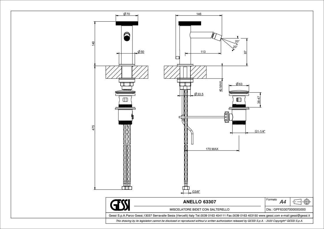 Смеситель для биде Gessi Anello 63307.299 Matte Black