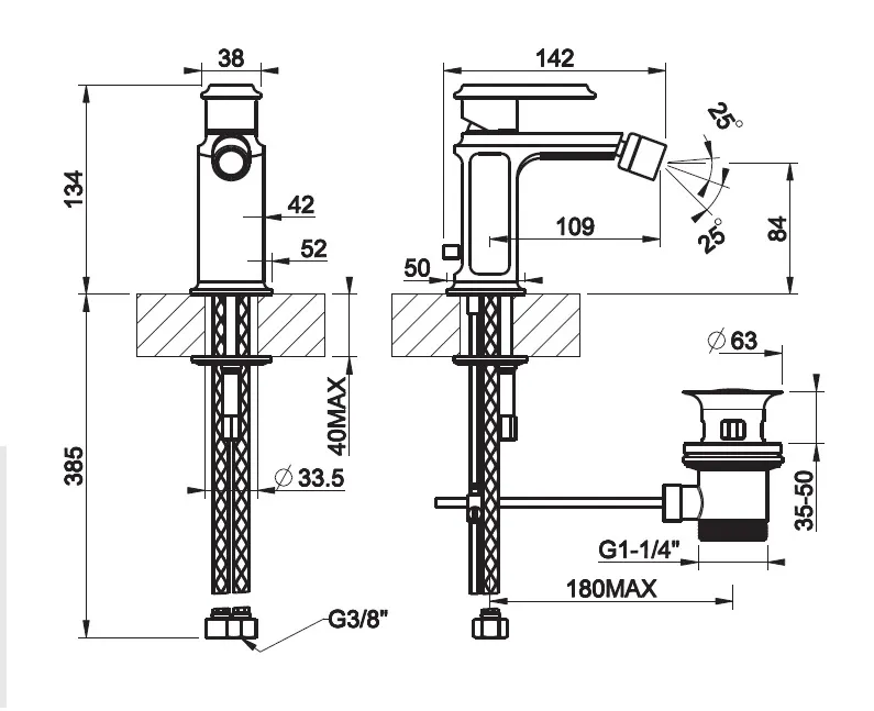 - Монтаж: на биде