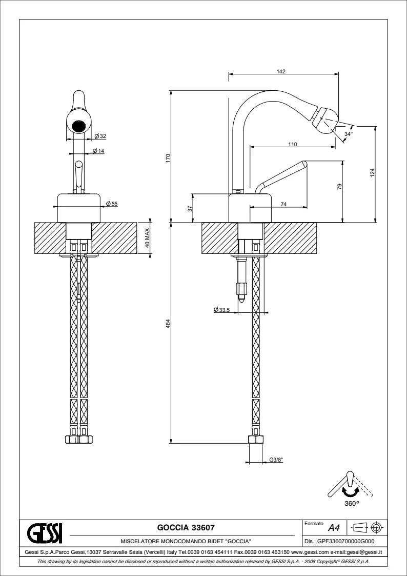 Смеситель для биде Gessi Goccia 33607.713 Antique Brass