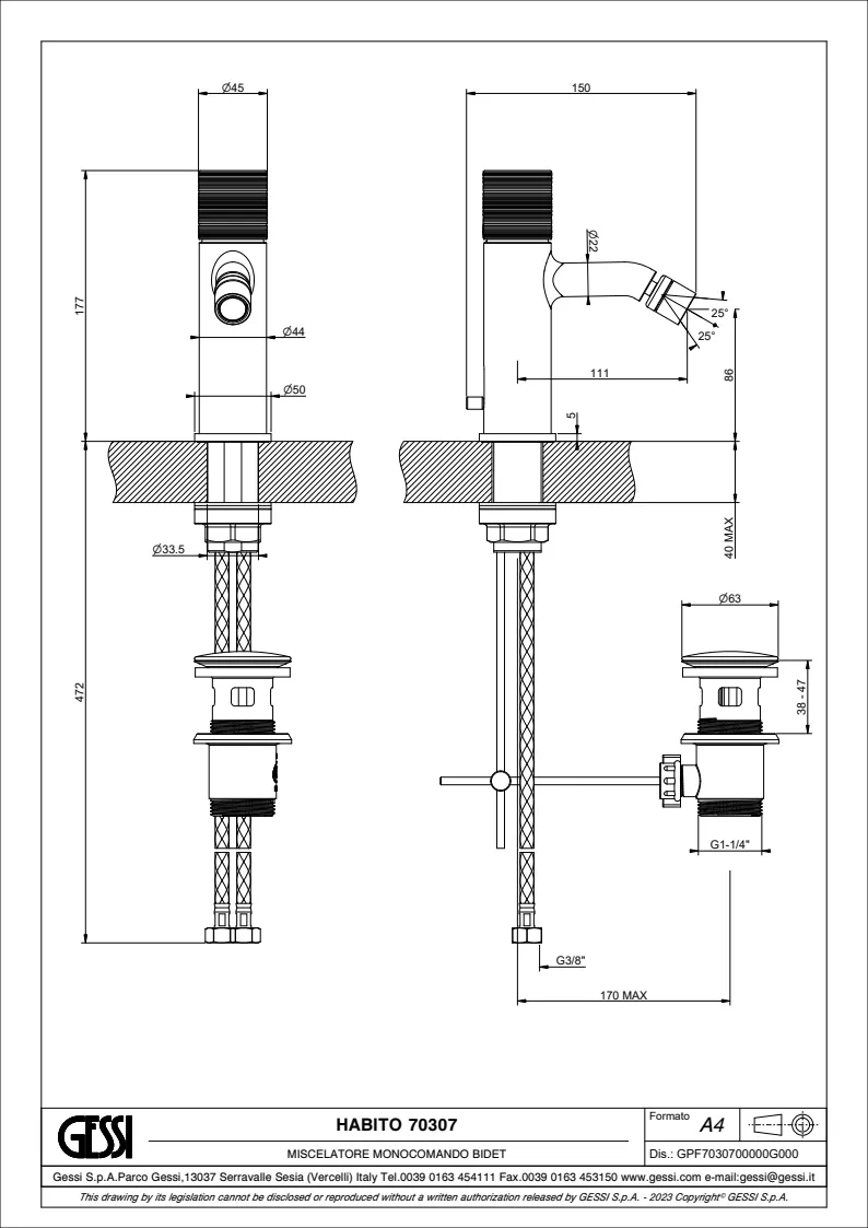 Смеситель для биде Gessi Habito 70307.149 Finox Brushed Nickel