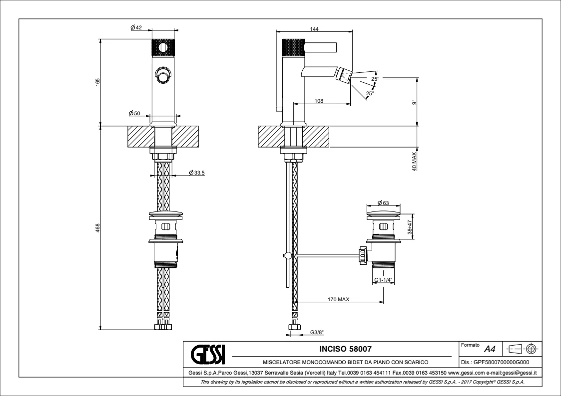 Смеситель для биде Gessi Inciso 58007.713 Antique Brass
