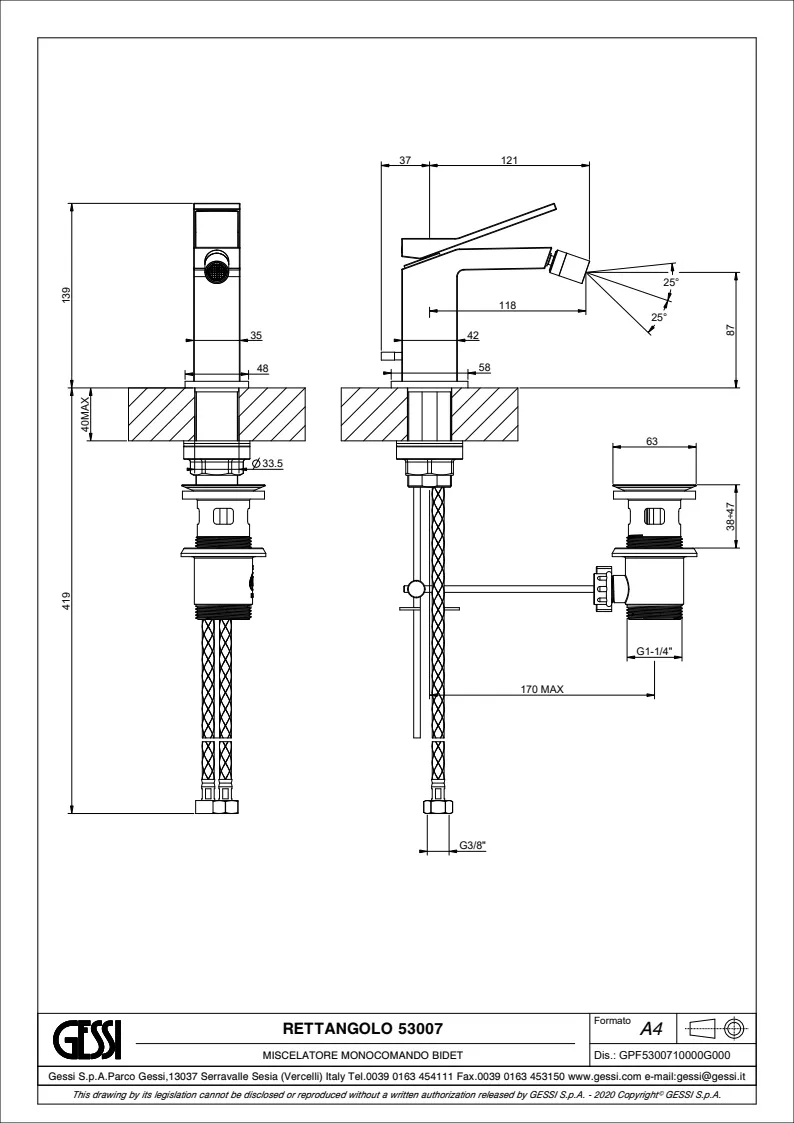 Смеситель для биде Gessi Rettangolo K 53007.299 Matte Black
