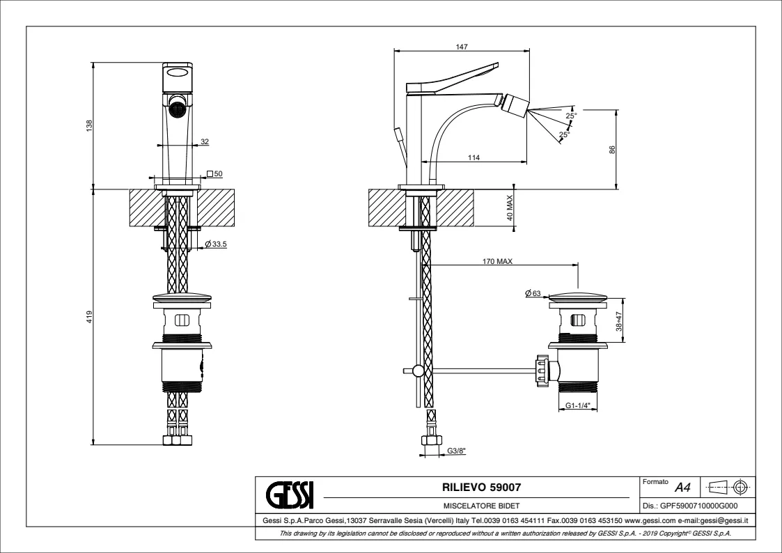 Смеситель для биде Gessi Rilievo 59007.299 Matte Black