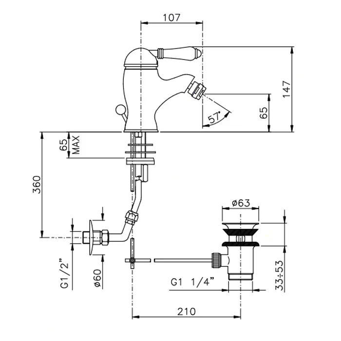 Nicolazzi Classico 3403DB76 - смеситель для биде, однорычажный, на 1 отв., с донным клапаном, ручка белая керамика - p.m. blanc, излив фиксированный: высота - 6,5 см, длина - 10,7 см, аэратор с изменяемым углом наклона, цвет - бронза.