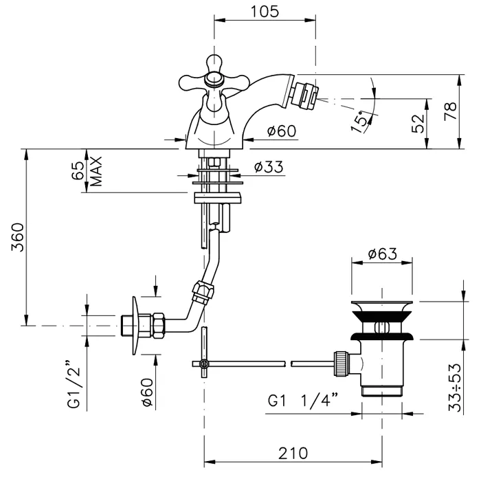 Смеситель для биде Nicolazzi Nuova Brenta на 1 отв. 2534BZ