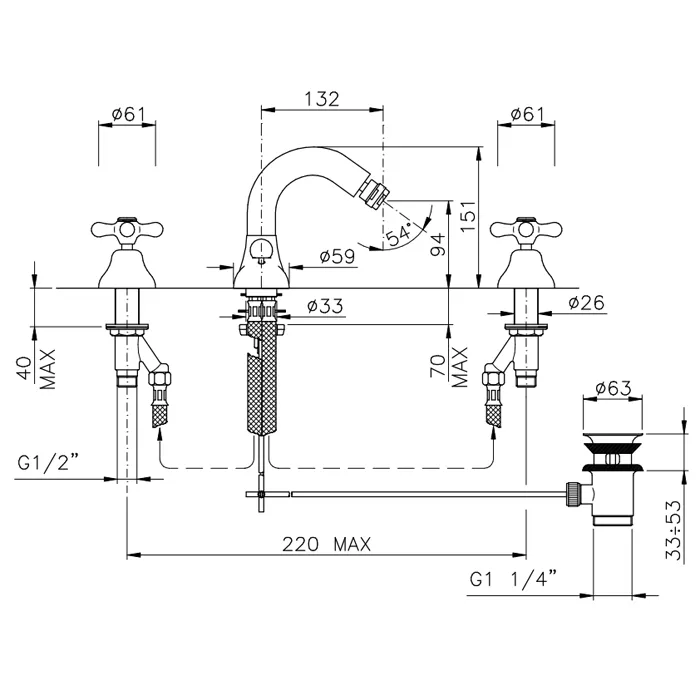 Смеситель для биде Nicolazzi Nuova Brenta на 3 отверстия, с донным клапаном, излив: 132мм, бронза 2515BZ