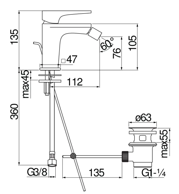 SE124119/1BM Seven смеситель для биде, матовый черный