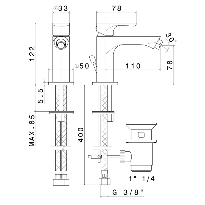 Смеситель для биде OLE однорычажный с донным клапаном Kerama Marazzi черный матовый 69425KM.01.093