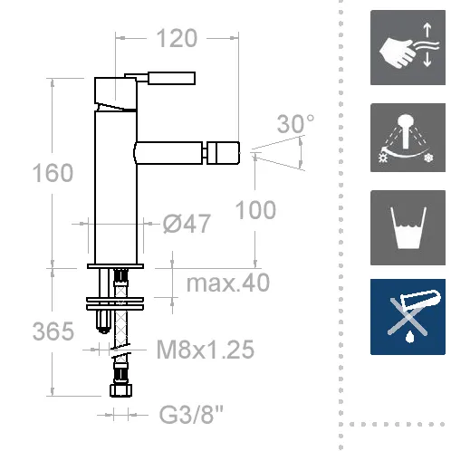 - Высота модели составляет 160 мм, что идеально подходит для большинства стандартных биде.