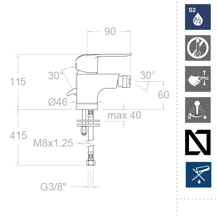 Смеситель оснащен керамическим картриджем диаметром Ø35 мм, обеспечивая плавное регулирование потока воды и надежность на долгие годы. Экономьте ресурсы благодаря системе S2, позволяющей открывать ручку смесителя в два этапа и контролировать расход воды, который при давлении 3 бар составляет от 6 до 12 литров в минуту.