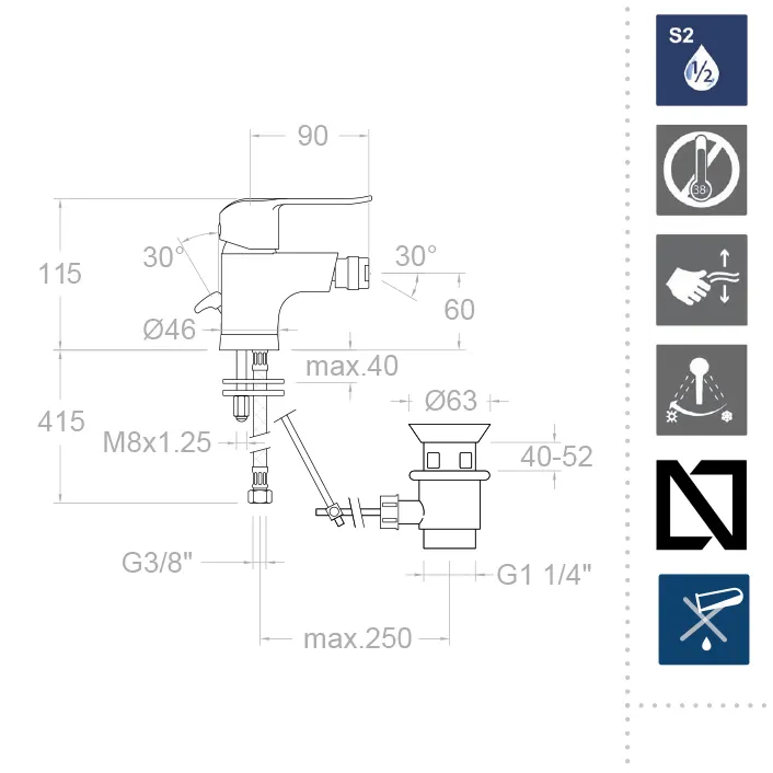 - Экономьте воду с системой S2, позволяющей открывать ручку смесителя в два этапа и контролировать расход воды.