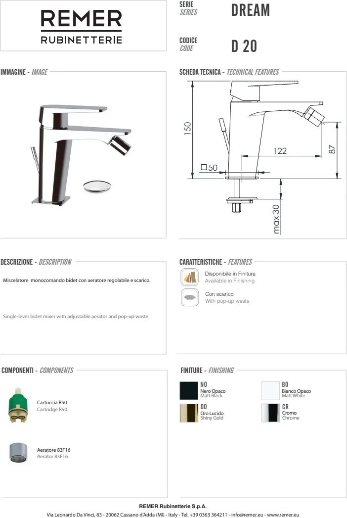 Представляем вашему вниманию смеситель для биде из коллекции Dream от итальянского бренда Remer. Этот однорычажный смеситель изготовлен из высококачественной латуни и имеет современный угловатый дизайн, который станет стильным дополнением к вашему санузлу. Смеситель оснащён регулируемым аэратором и донным клапаном, что обеспечивает удобство в использовании. Глянцевая хромированная поверхность придаёт изделию элегантный внешний вид и лёгкость в уходе. Данная модель предназначена для монтажа непосредственно на биде и рассчитана на одно монтажное отверстие. Приобретая данный смеситель, вы получаете гарантию качества и долговечности на 10 лет.