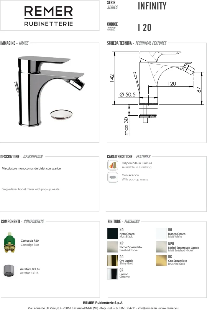 Однорычажный смеситель Remer из коллекции Infinity станет отличным дополнением к вашему современному интерьеру ванной комнаты. Он предназначен специально для биде и оснащен донным клапаном для удобства использования. Изделие выполнено из высококачественной латуни, что обеспечивает долговечность и надежность. Этот стильный смеситель с балансной формой излива и фиксированным расположением отличается элегантной матовой поверхностью, придавая всему пространству утончённый вид.