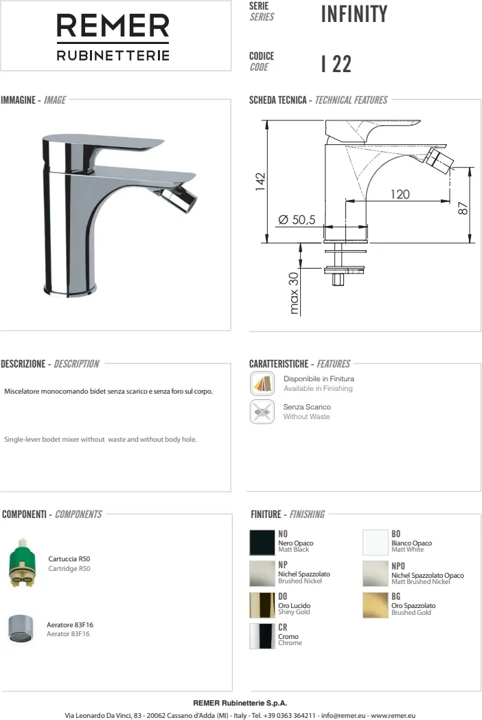 Представляем вашему вниманию современный смеситель для биде из коллекции Infinity от бренда Remer. Этот элегантный однорычажный смеситель выполнен в изысканном цвете "золото брашированное", что придает ему особый шарм и роскошь. Смеситель предназначен для установки на биде и оснащен фиксированным изливом. Исключительной чертой данного изделия является его стильный дизайн и удобство в использовании, что делает его отличным выбором для ванных комнат, оформленных в современном стиле. Смеситель не комплектуется донным клапаном и не имеет отверстий в теле, что упрощает его конструкцию и обеспечивает легкость в уходе.