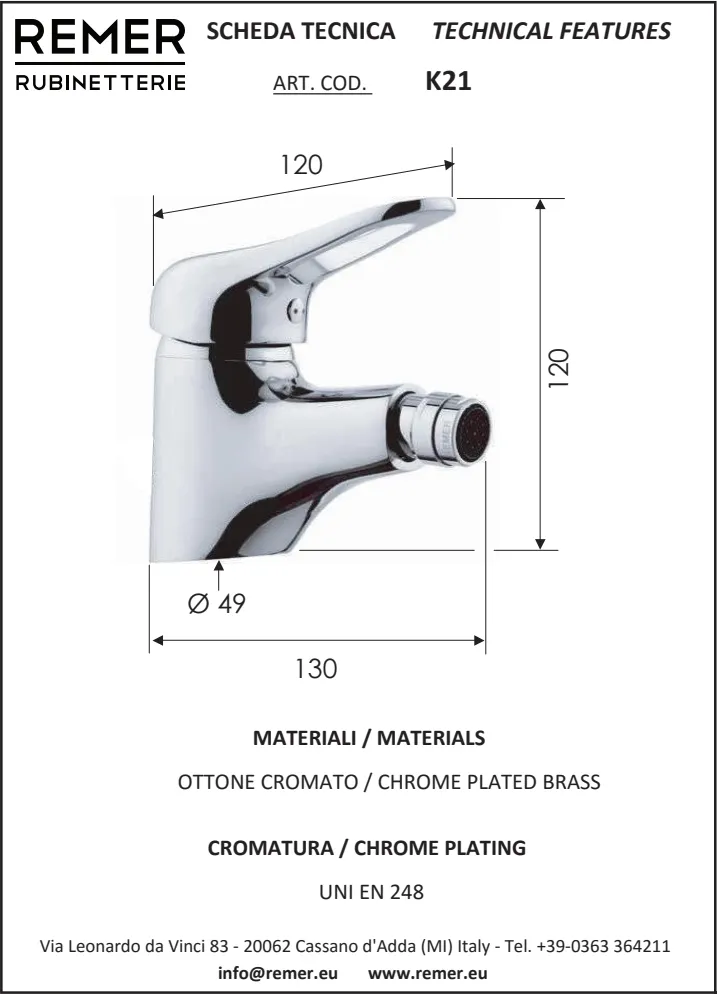 Смеситель для биде Remer из коллекции Kiss - это стильное решение для вашей ванной комнаты. Данный смеситель однорычажный, что обеспечивает простоту и удобство в использовании. Он оснащён регулируемым аэратором, который позволяет контролировать поток воды, достигая максимального комфорта. Выдержанный в классическом стиле, этот смеситель станет идеальным дополнением для вашего интерьера. Смеситель предназначен для установки на биде, не имеет донного клапана и оснащен фиксированным изливом.