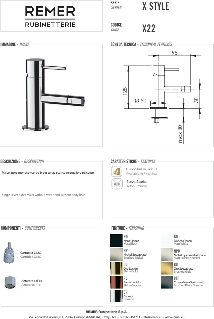 Смеситель для биде Remer из коллекции X-style сочетает в себе изысканный современный дизайн и высокую функциональность. Эта модель представлена в стильном черном брашированном хроме, что придаст уникальность и шарм вашей ванной комнате. Смеситель однорычажный, что обеспечивает легкость в управлении потоком воды. Он предназначен для установки на биде и имеет фиксированный излив, обеспечивающий надежность и удобство в использовании. Отсутствие донного клапана и отверстия в теле делает его идеальным выбором для тех, кто ценит минимализм и чистые линии в интерьере. Благодаря высокой надежности и качеству бренда Remer, данный смеситель станет отличным решением для вашего комфорта.