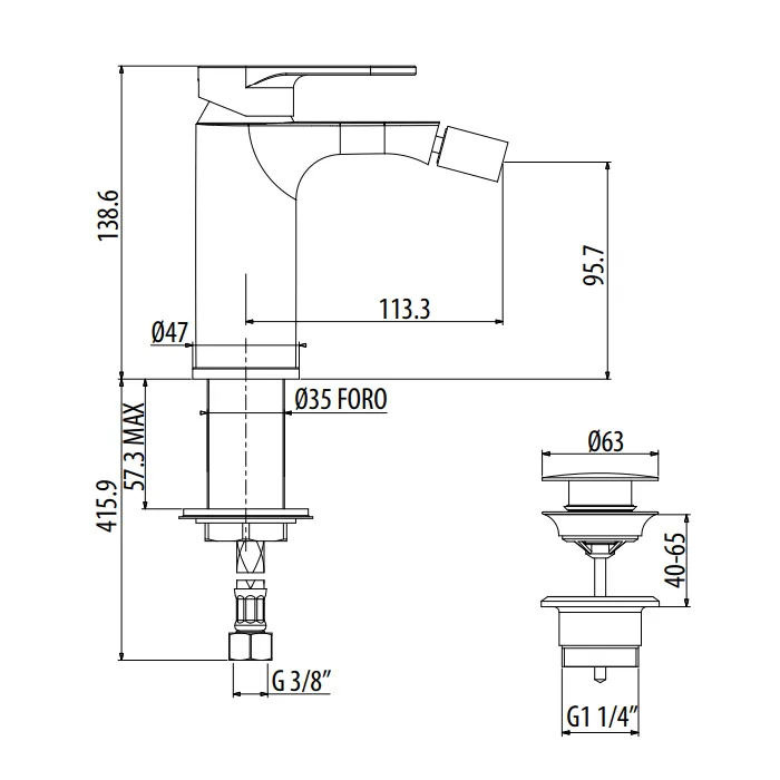 Смеситель для биде с донным клапаном Gattoni H2omix7000 излив 113.3, хром 7005570C0