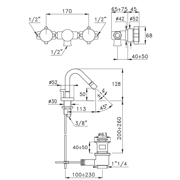 Смеситель для биде Stella Aster на 1 отверстие 3608, с донным клапаном и встраиваемыми ручками, хром AT 01303 CR00