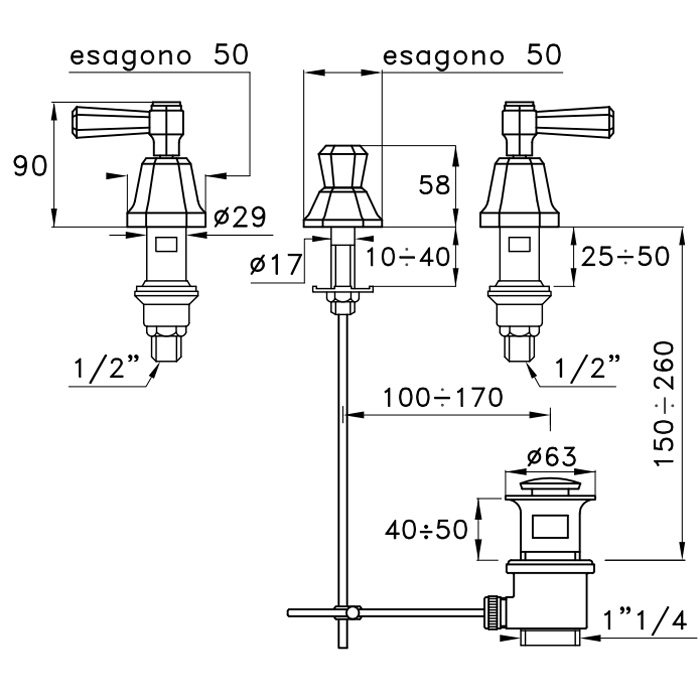 Смеситель для биде Stella Eccelsa Leve на 3 отверстия 3600, без излива, с донным клапаном, хром EL 00200 CR00