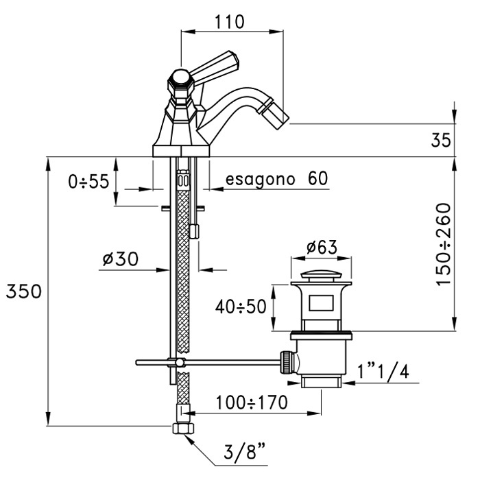 Смеситель для биде Stella Eccelsa Leve на 1 отверстие 3604, с донным клапаном, золото 24К EL 00204 AU00