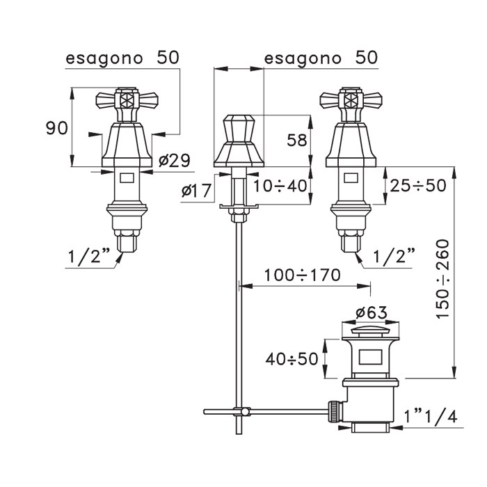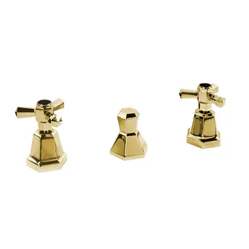 Смеситель для биде Stella Eccelsa на 3 отверстия 3600, без излива, с донным клапаном, золото 24К EC 00200 AU00