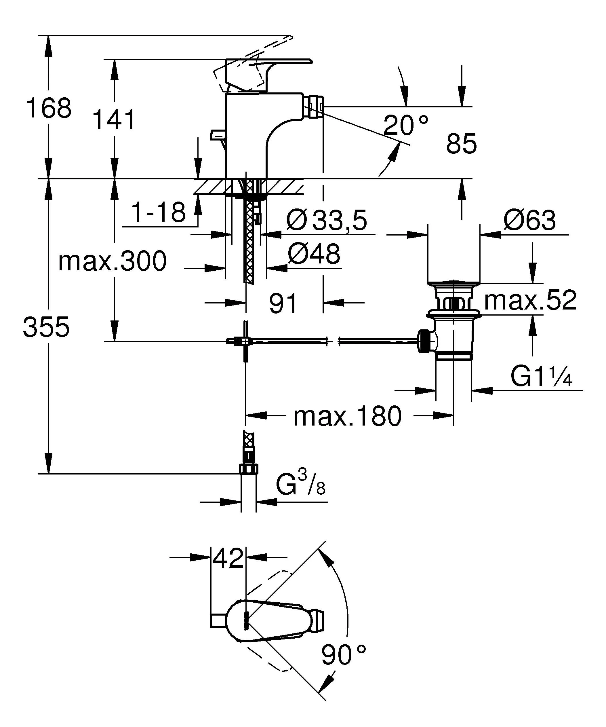 pop-up waste set (антисмещение сливы) — удобно управлять сливом биде одной ручкой или тягой, без необходимости покупать дополнительный комплект.