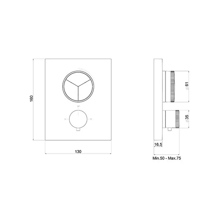 Внешняя часть термостата Almar Push Square Core на 3 потребителя, high brass E176683.HB