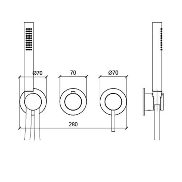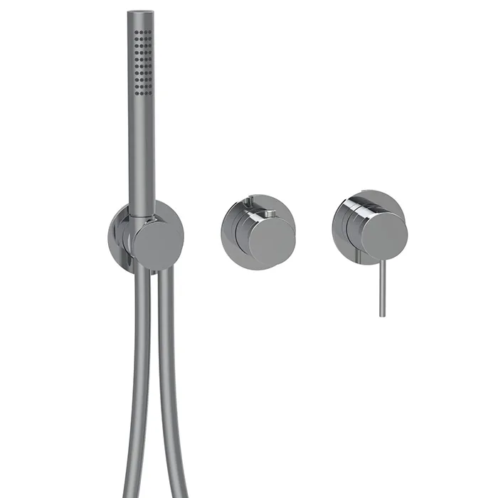 Смеситель настенный внешняя часть Almar Modular круглые розетка, с перекл. на 2 положения, с ручным душем и шлангом, stainless steel aisi316 E180142.316
