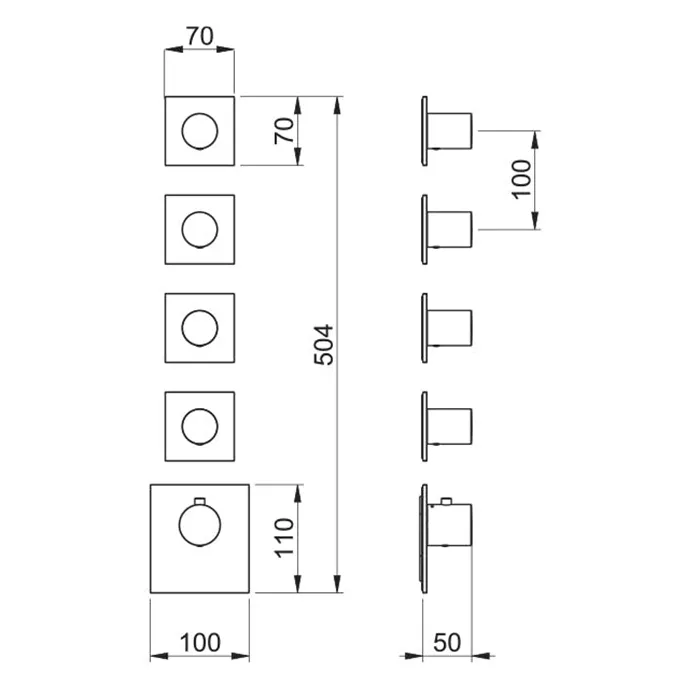 Внешняя часть термостатического смесителя Almar с 4-мя запорными вентилями, латунь брашированная pvd E180084.HB