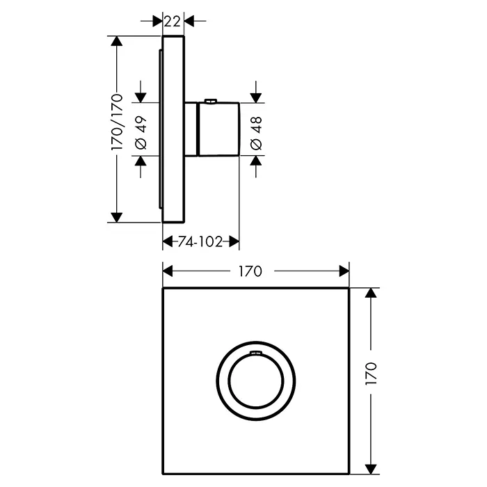 AX ShowerSelect Встраиваемый термостат для душа, 1 потреб, (внешняя часть), цвет: полированный черный хром