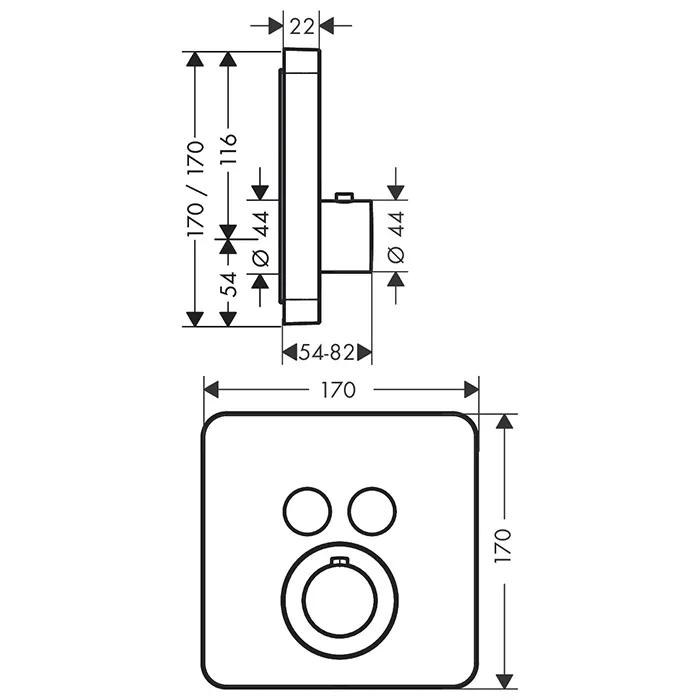 AX ShowerSelect Встраиваемый термостат для душа, 2 потреб, (внешняя часть), цвет: Шлифованный черный хром