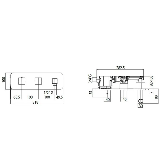 Bossini Cube Комплект:Термостат для душа, встраиваемый, с девиатором на 2 выхода, с держателем с во