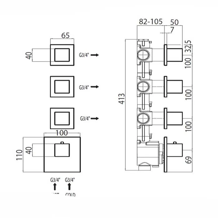 Bossini Cube Смеситель для душа, встраиваемый, термостатический, (внешняя часть), с запорным вентиле