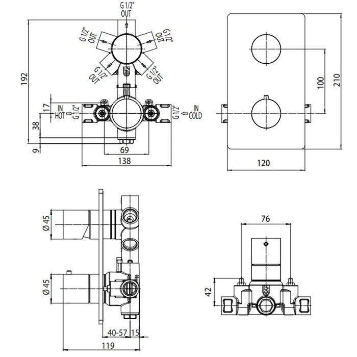 Bossini Liberty Смеситель для душа, встраиваемый, термостатический, с переключателем на 5 источников