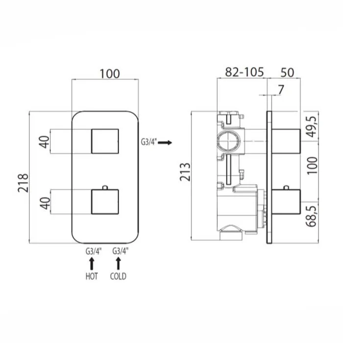 Bossini Oki Термостат для душа, встраиваемый, с девиаторм/запорным вентилем на 1 или 2 выхода, уст-