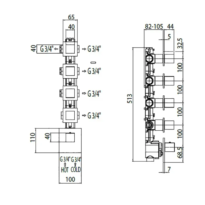 Bossini Rectangular Термостат для душа, встраиваемый, с девиаторм/3 запорных вентиля на 5 выходов, у