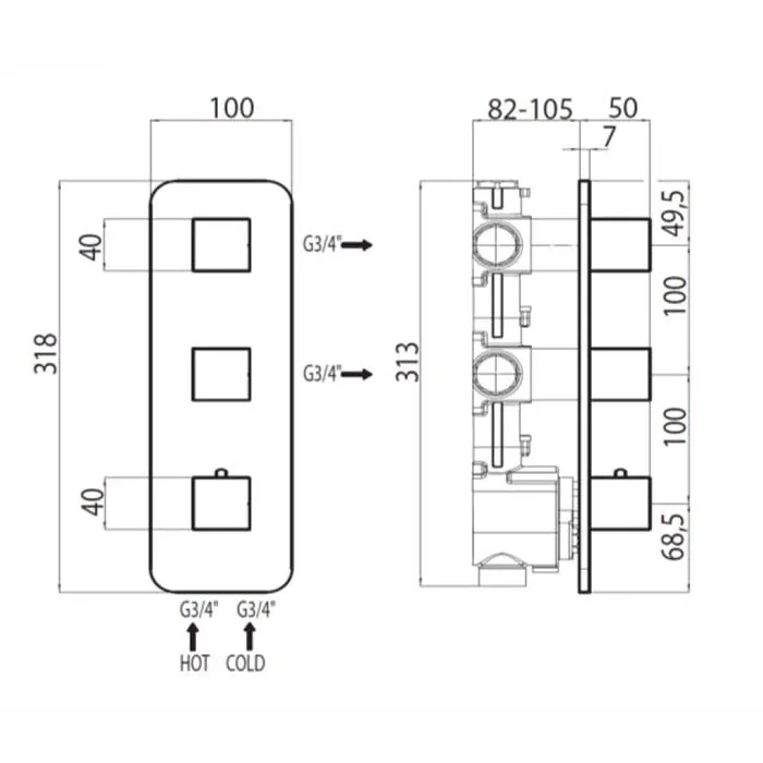 Bossini Rectangular Термостат для душа, встраиваемый, с девиаторм/запорным вентилем на 2 - 4 выхода,