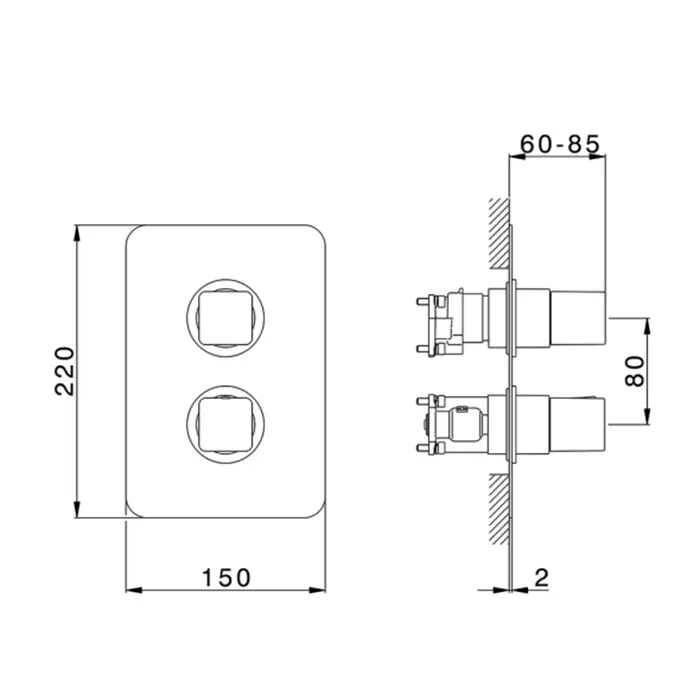 Cмеситель для душа Cisal Cubic термостат, 1-2-3 положения, Nero Opaco (без внутр части ZA00B030-ZA00B031) CU0BT03040