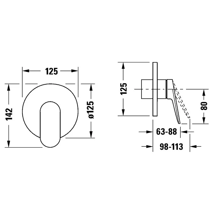 Duravit Wave Однорычажный смеситель для душа для скрытого монтажа, хром