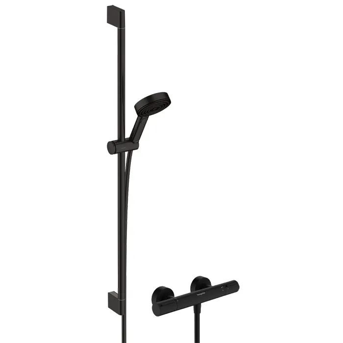 HG Pulsify Душевой набор 105 3jet Relaxation EcoSmart с термостатом Ecostat Element и душевой штангой 90 см, матовый черный