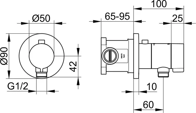 Комплект термостата для душа встроенный с соединением-выводом для шланга , kруглый