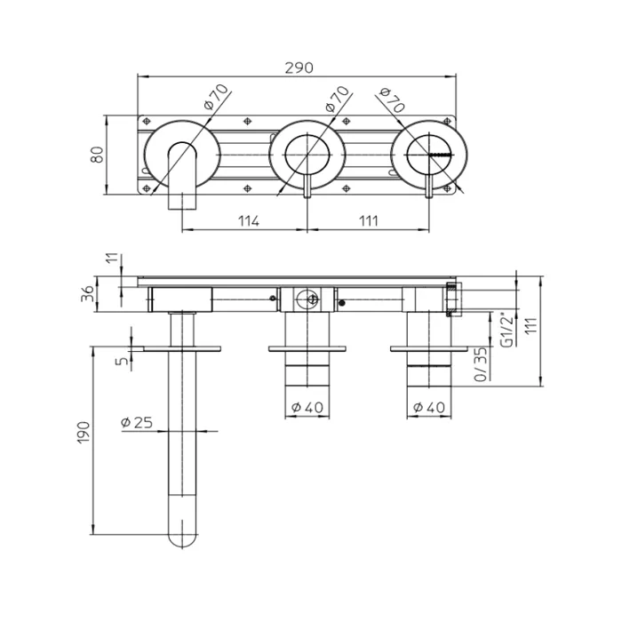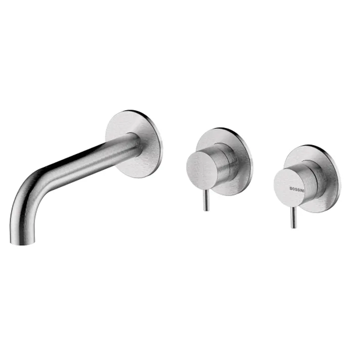 Наружная часть Bossini Nobu монорычажного смесителя для ванны Nobu с переключением на 2 выхода и изливом на ванну 190 мм.. Mat brushed S.S.