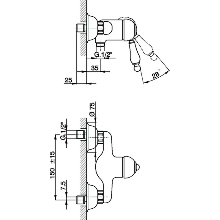 Смеситель для душа Cisal Arcana Empress однорычажный, настенный, бронза EM00044127 Акция