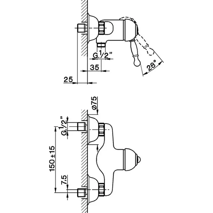 Смеситель для душа Cisal Arcana Royal однорычажный, настенный, бронза AY00044127 Акция