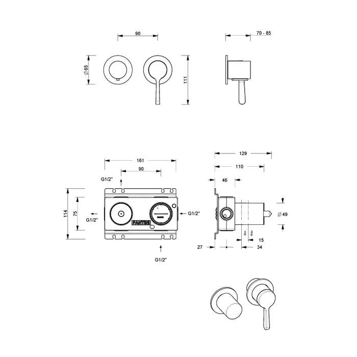 Смеситель для душа Fantini Torino на 2 выхода хром, наружная часть, 58 02 L981B