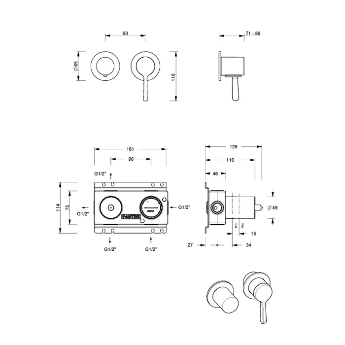 Смеситель для душа Fantini Torino на 3 выхода хром, наружная часть, 58 02 L989B