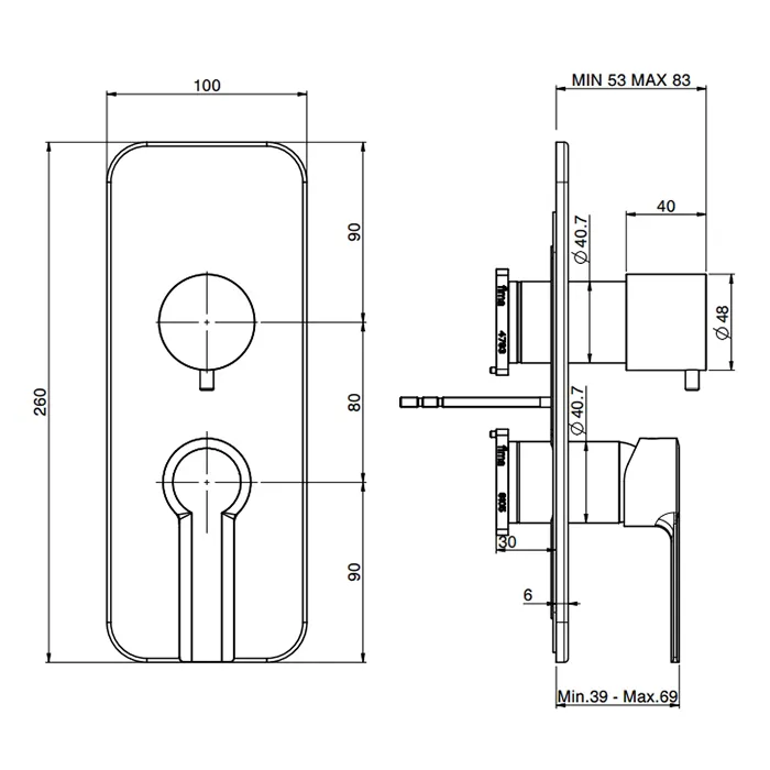 Смеситель для душа Fima Carlo Frattini Bathroom Mast встраиваемый, с переключателем на 2/3 источника, без внутр. части, хром F3139X6CR